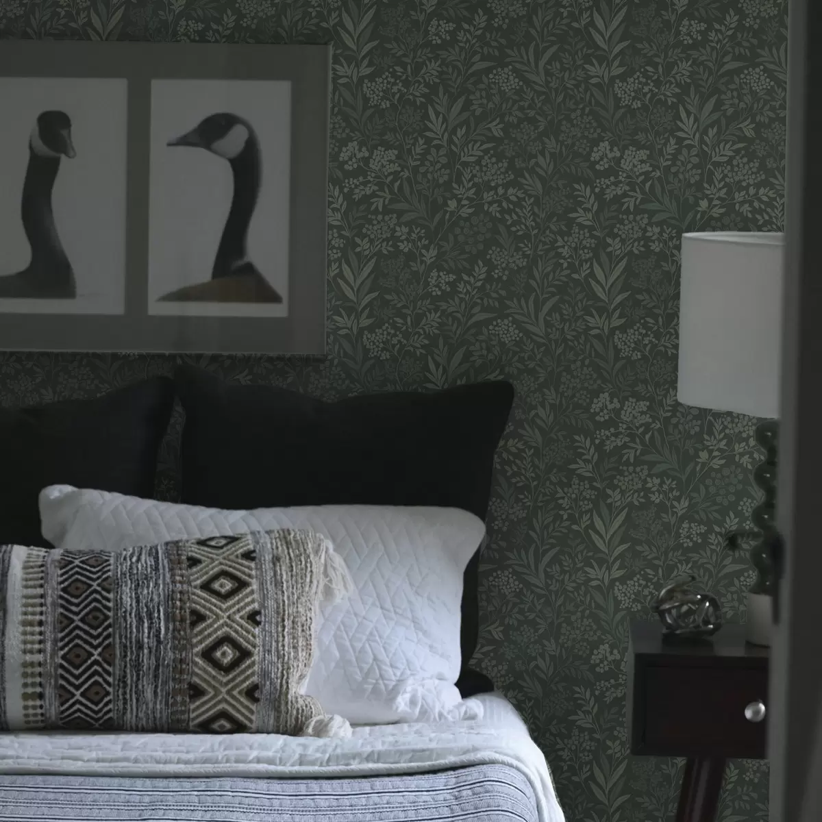 Tapéta Smaragdszínű fű és bogyók, finom botanikai mintázat Nr. a00740