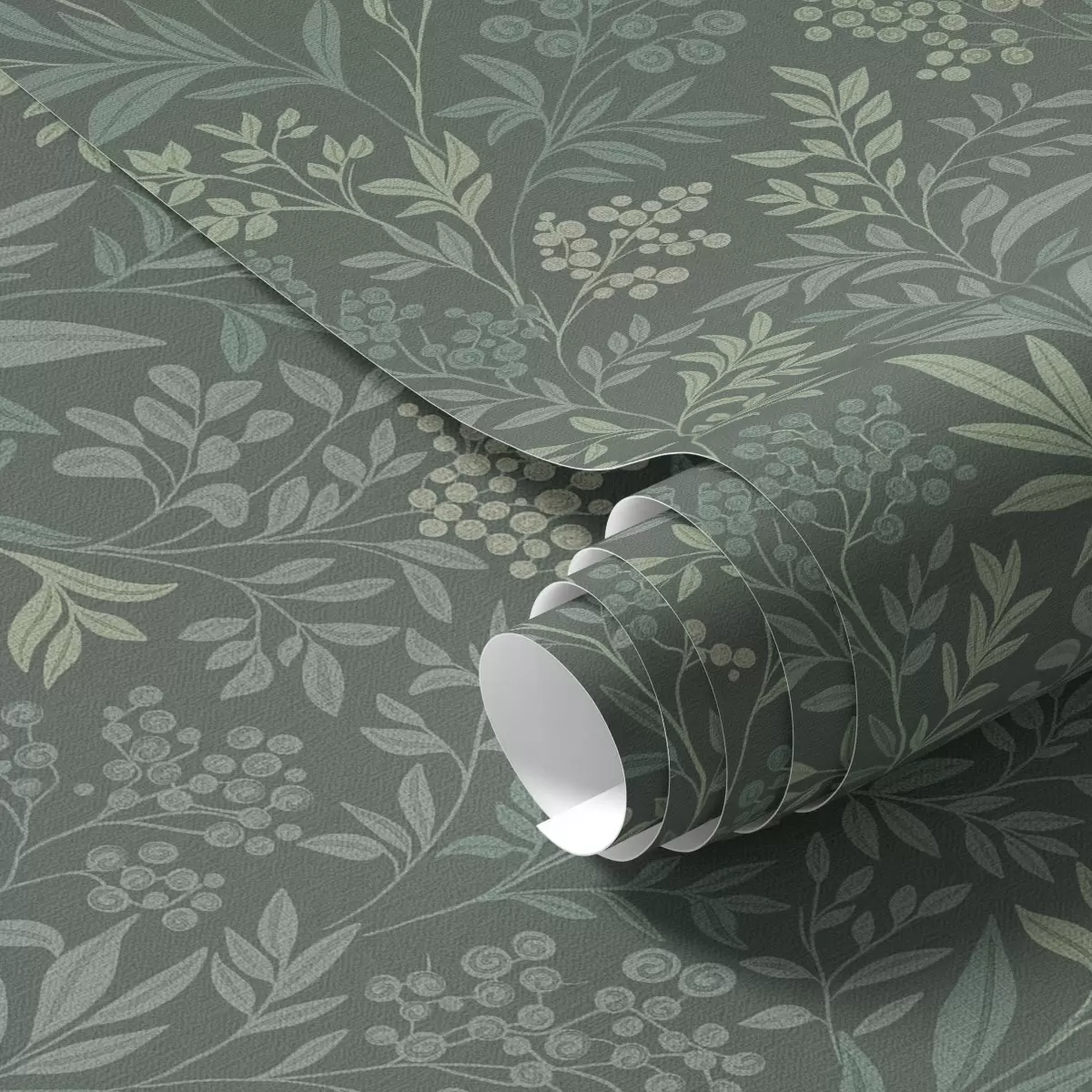 Tapéta Smaragdszínű fű és bogyók, finom botanikai mintázat Nr. a00740