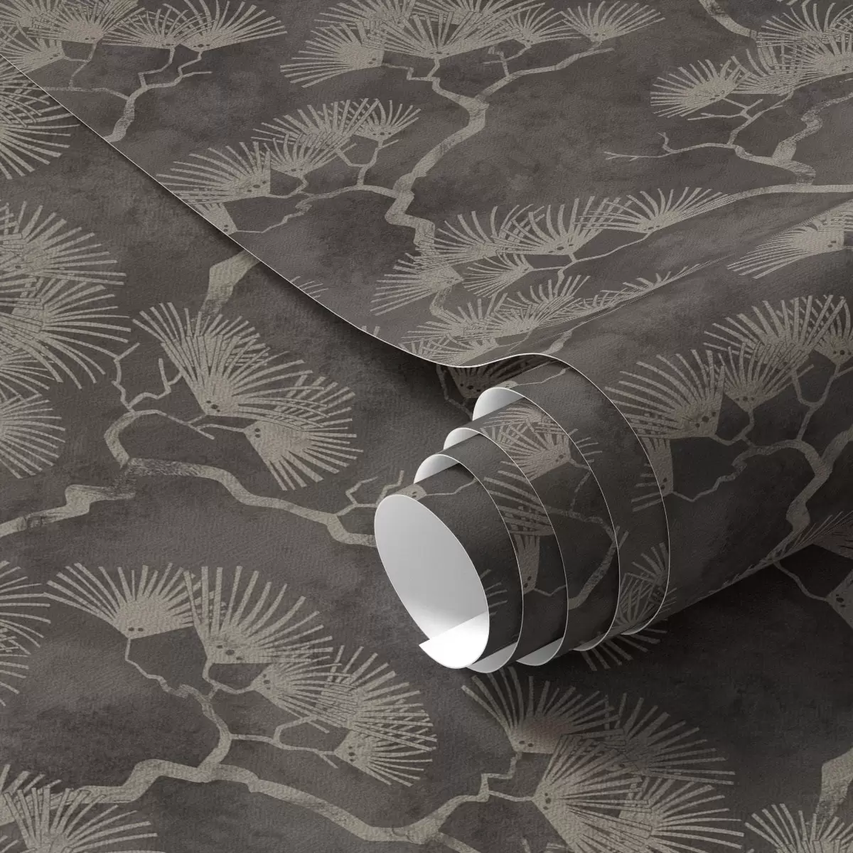 Tapéta Sötét háttér előtt látható fenyőfa sziluettek, ködös textúra Nr. a00742