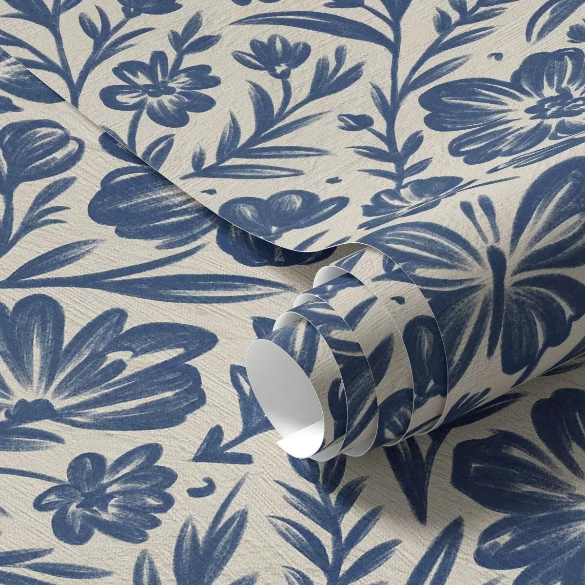 Tapéta Kék virágdíszítés pillangókkal Nr. a00758