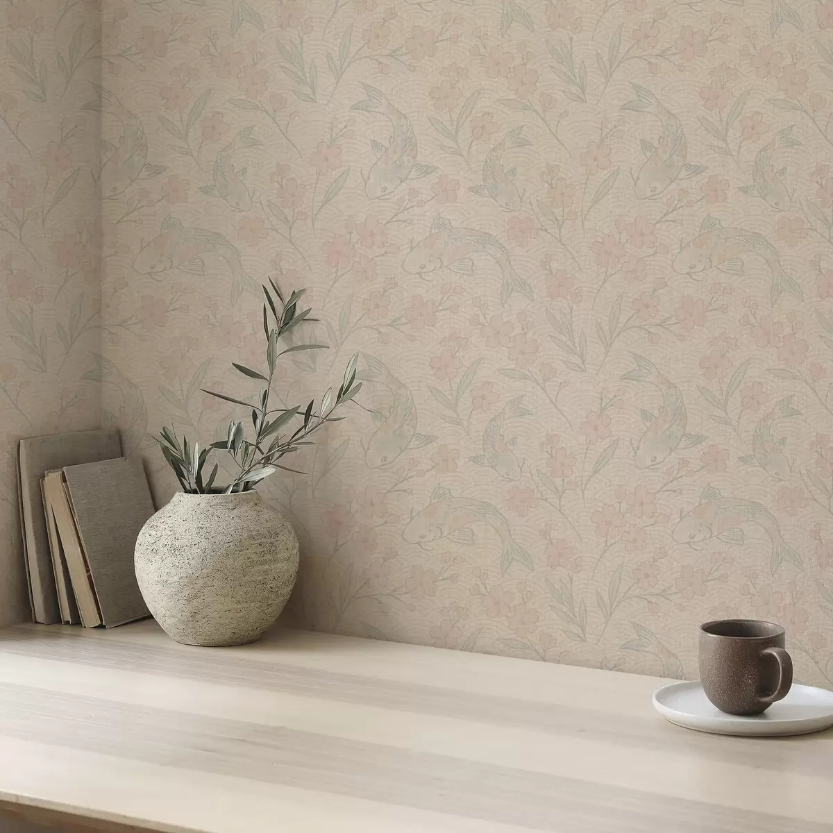 Tapéta Kárászok virágok között, lágy bézs-rózsaszín árnyalatokban Nr. a00766