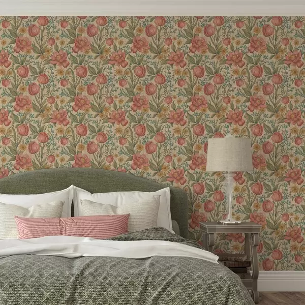 Tapéta Vintage tulipánok és őszirózsák, texturált krém alapon Nr. a00773