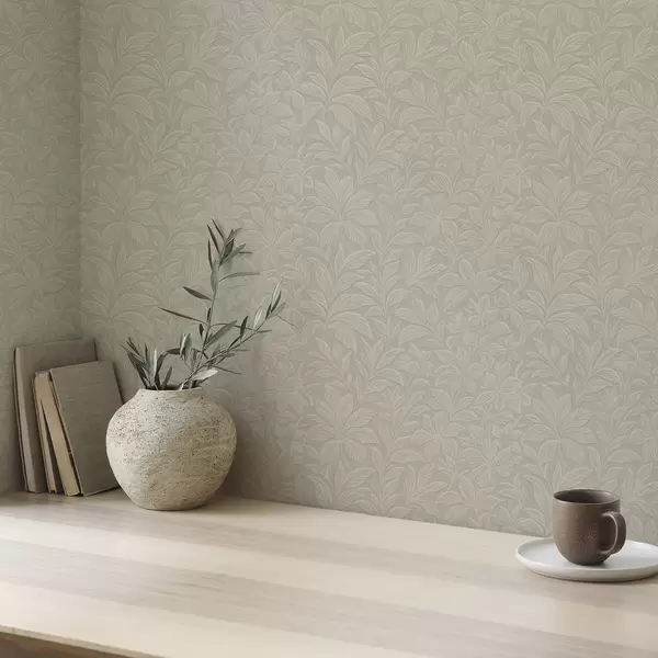 Tapéta Dombornyomott levélsziluettek, meleg szürkésbarna Nr. a00781