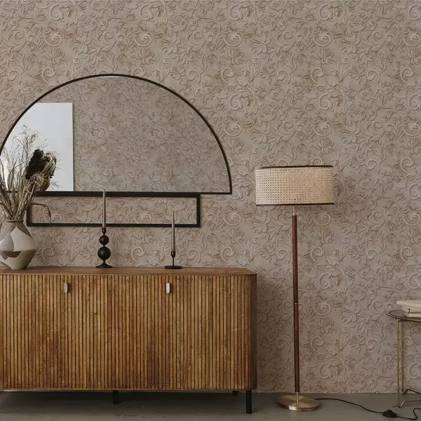 Tapéta Kő dombormű virágos tekercsekkel, vintage bézs színű Nr. a00784