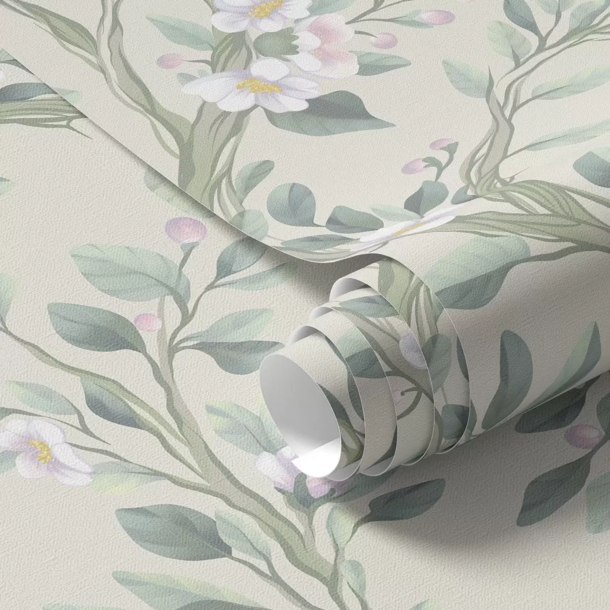 Tapéta Finom virágzó ágak krémes háttérrel, pasztell Nr. a00793