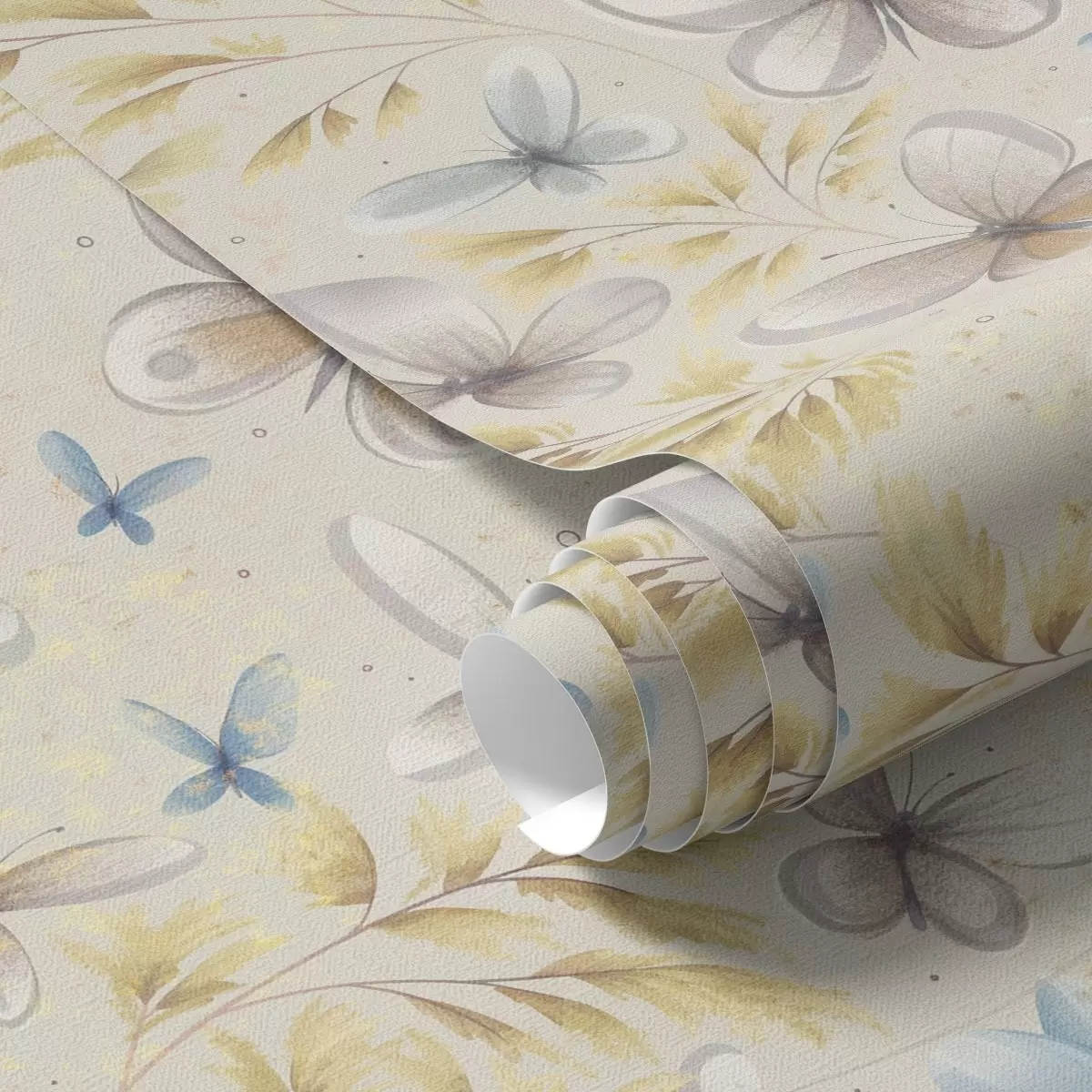 Tapéta Könnyű pillangók arany levelek között világos háttér előtt Nr. a00795