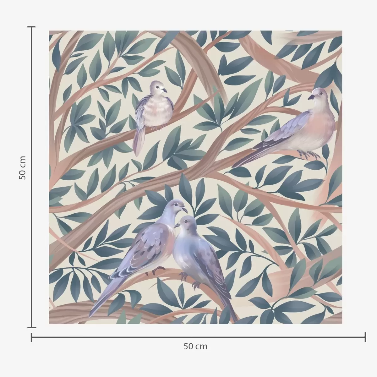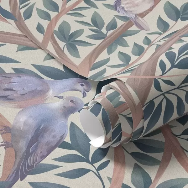 Tapéta Galambok ágak és levelek között, lágy pasztell színekkel Nr. a00796