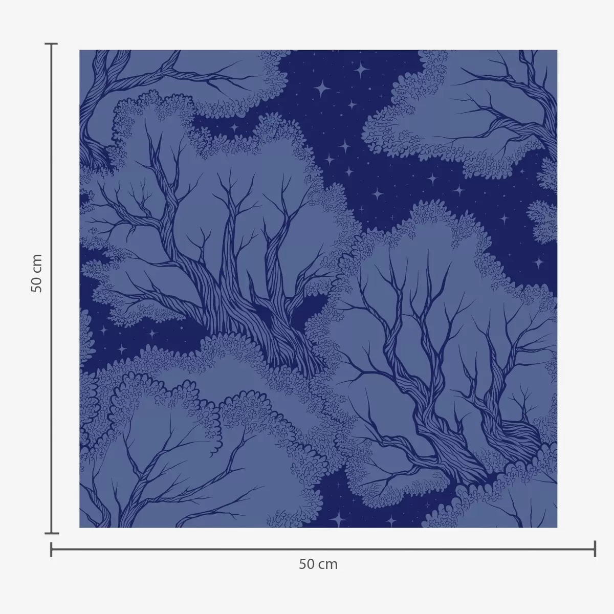 Tapéta Fák sziluettjei csillagos ég alatt, kék árnyalatokban Nr. a00798