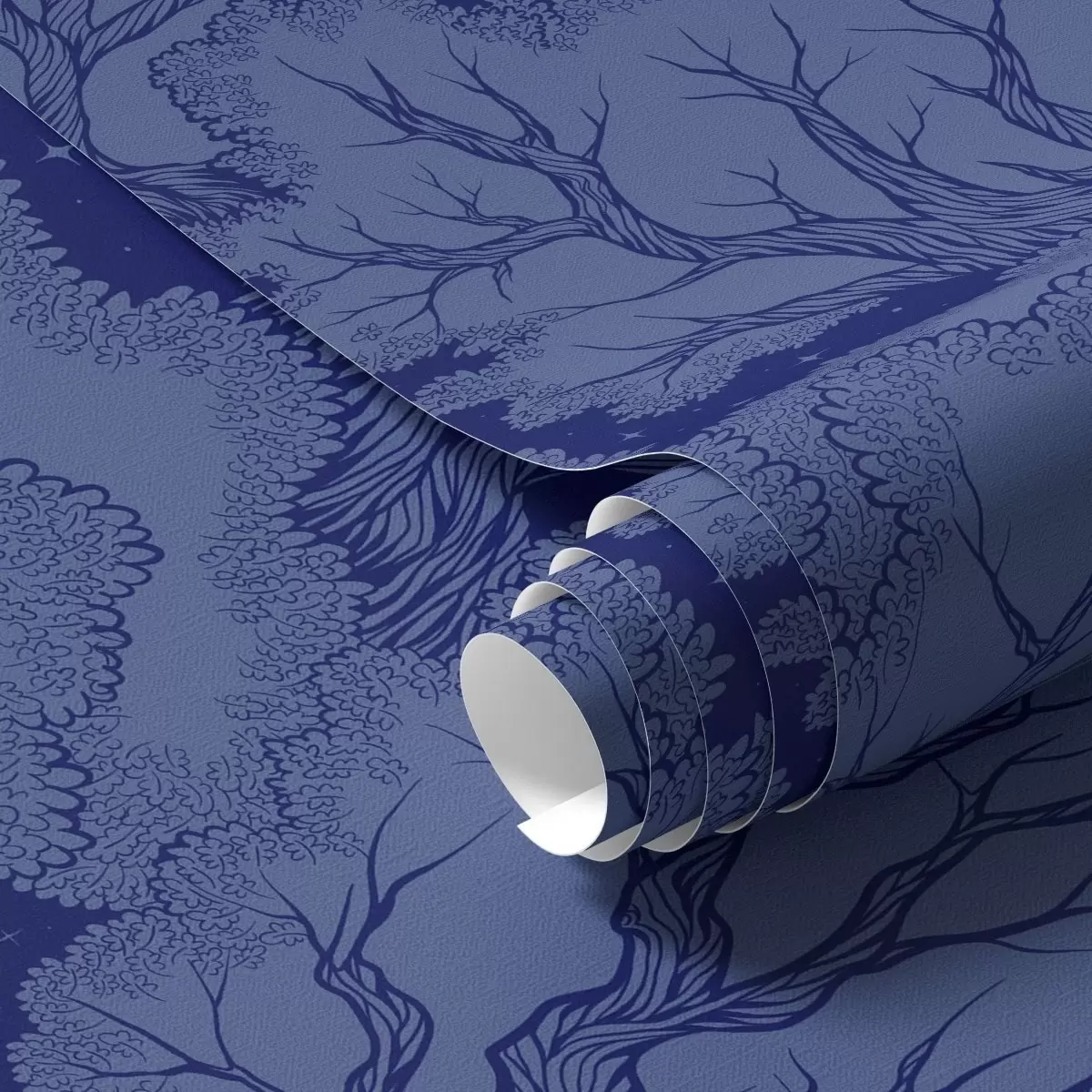 Tapéta Fák sziluettjei csillagos ég alatt, kék árnyalatokban Nr. a00798