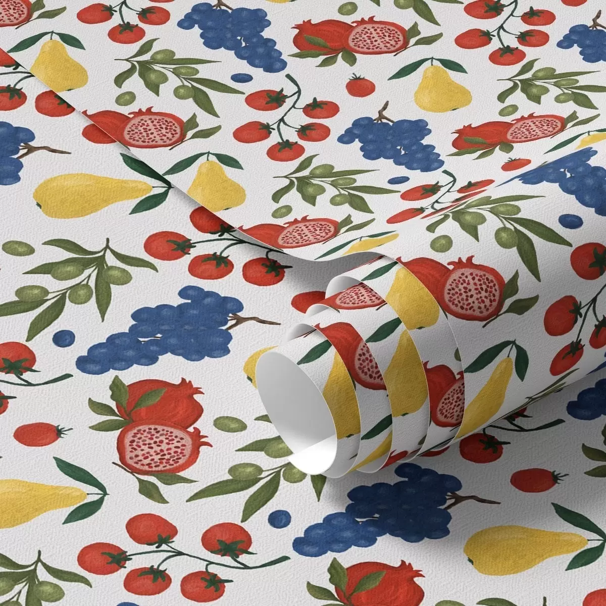 Tapéta Lédús gyümölcsök: gránátalmák, szőlő, körte fehér háttér előtt Nr. a00801