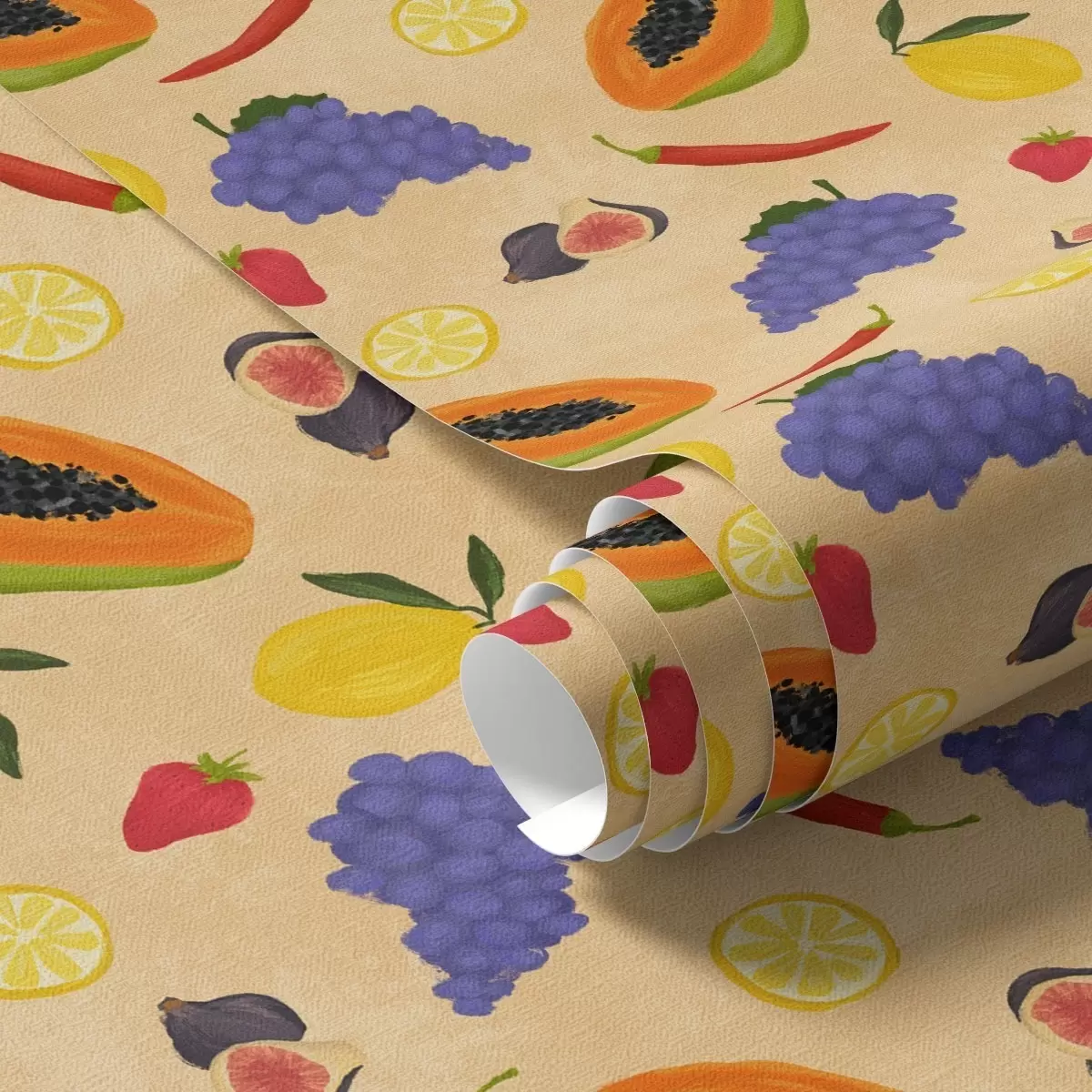 Tapéta Papaya, citrusfélék és bogyós gyümölcsök gazdag, meleg háttér előtt Nr. a00803v1