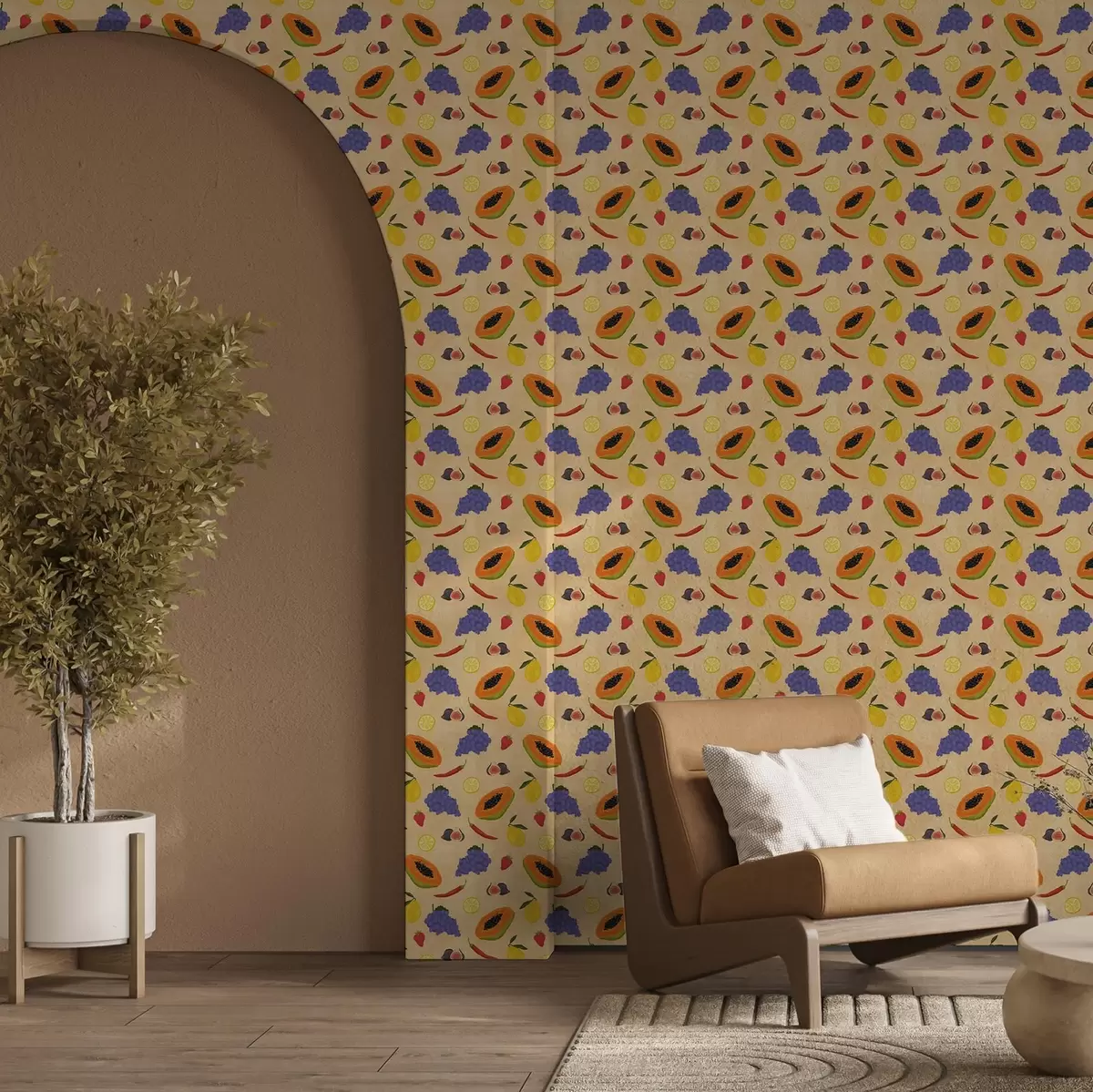 Tapéta Papaya, citrusfélék és bogyós gyümölcsök gazdag, meleg háttér előtt Nr. a00803v1