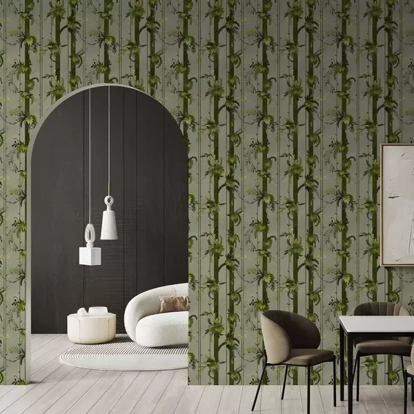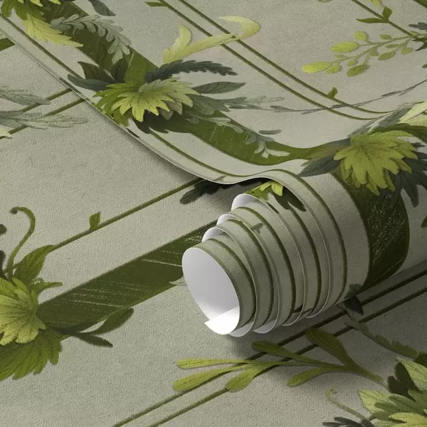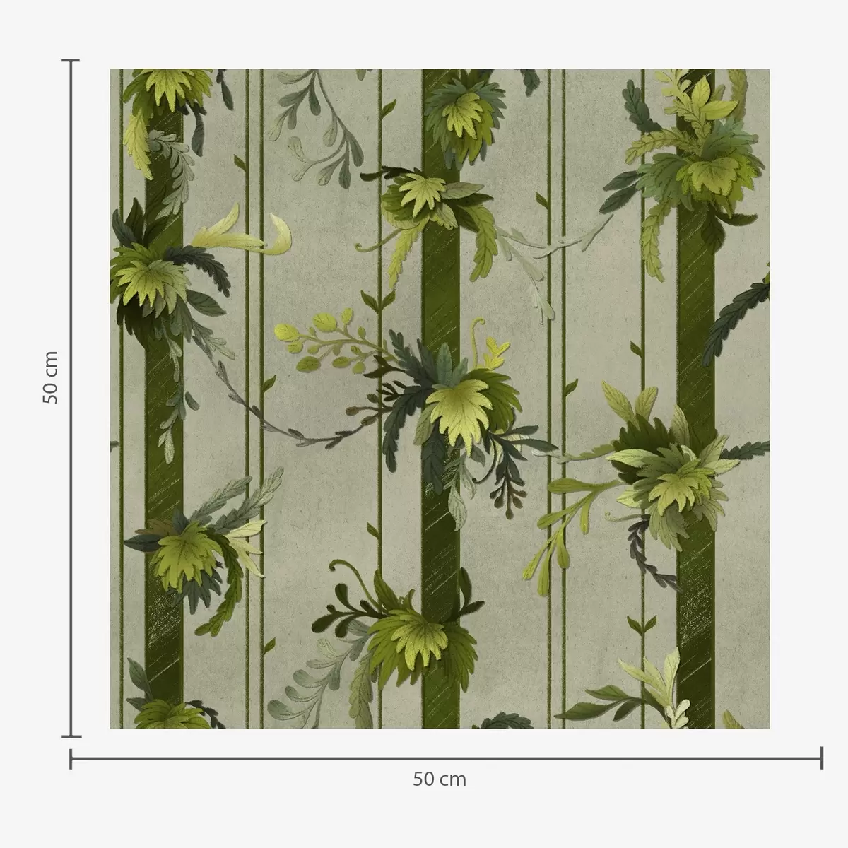Tapéta Zöld levelek függőleges csíkokban szürke háttér előtt Nr. a00807v1