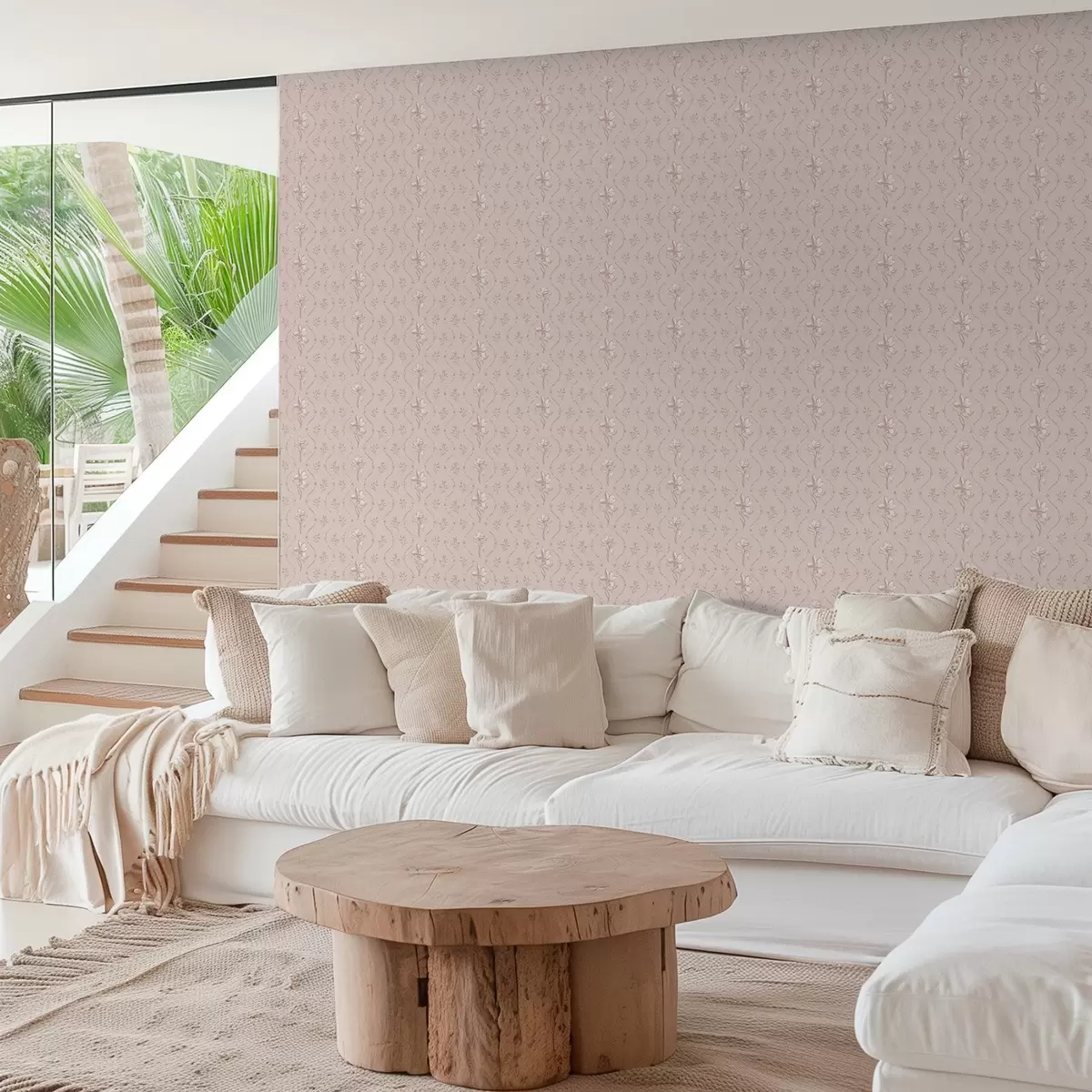 Tapéta Kis virágok és szalagok lágy rózsaszín és bézs árnyalatokban Nr. a00808