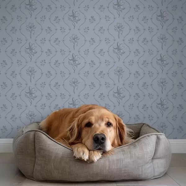 Tapéta Kis virágok és szalagok szürke-kék színpalettában Nr. a00808v2