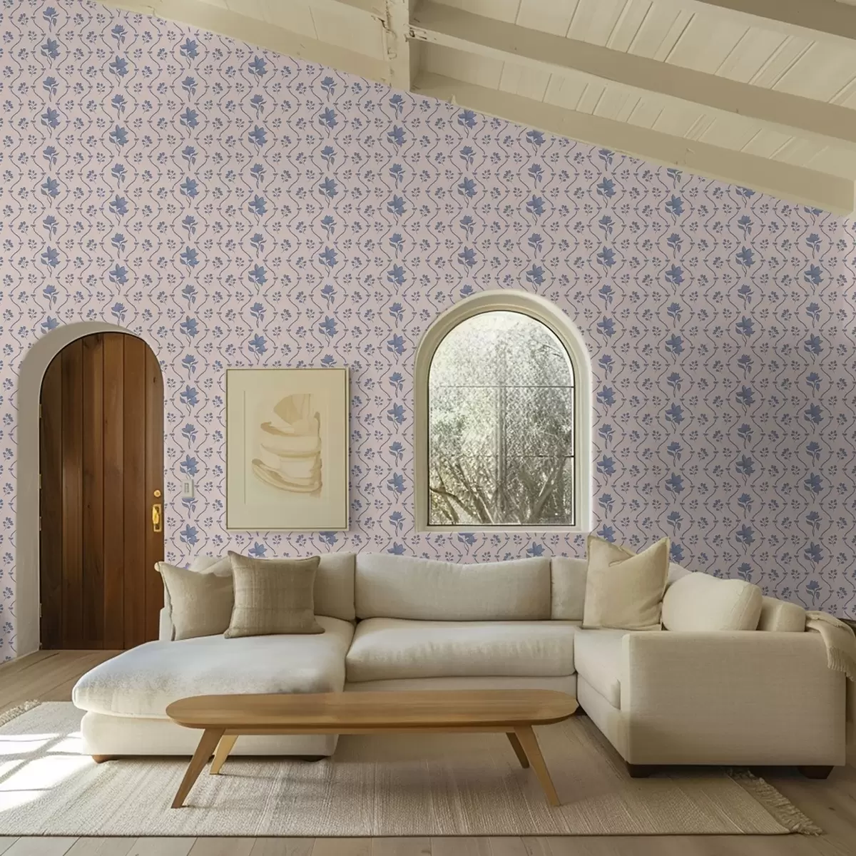 Tapéta Kis virágok és szalagok kék és rózsaszín árnyalatokban Nr. a00808v3