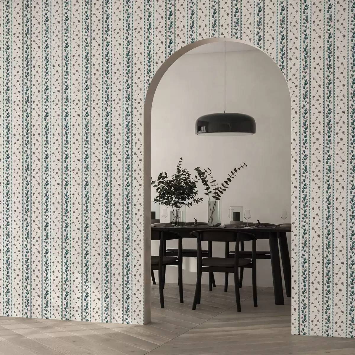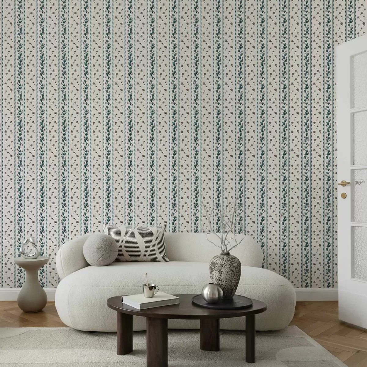 Tapéta Kék-barna árnyalatú függőleges virágos csíkok Nr. a00811