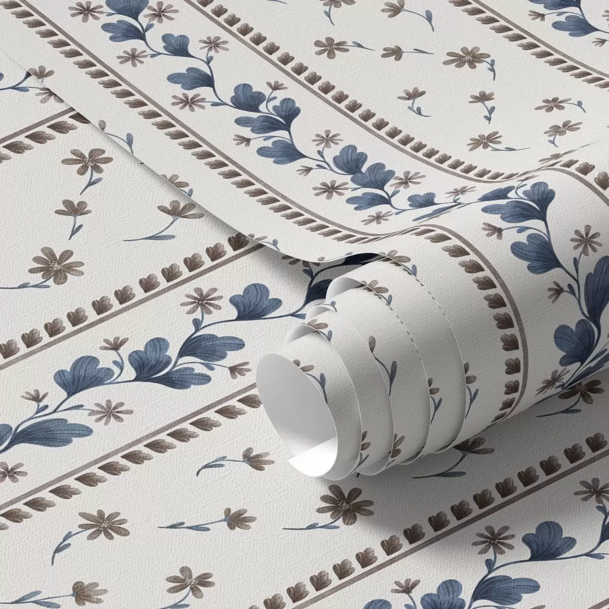 Tapéta Kék-barna árnyalatú függőleges virágos csíkok Nr. a00811v2