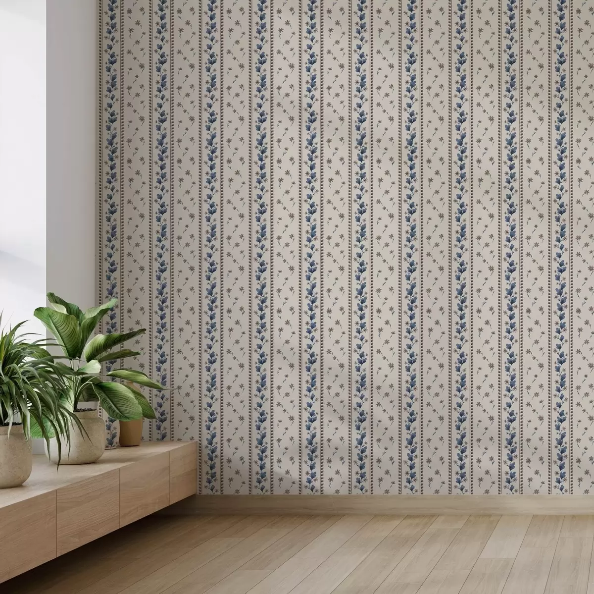 Tapéta Kék-barna árnyalatú függőleges virágos csíkok Nr. a00811v3