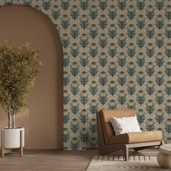 Tapéta Szimmetrikus virágdísz meleg tónusokban Nr. a00812