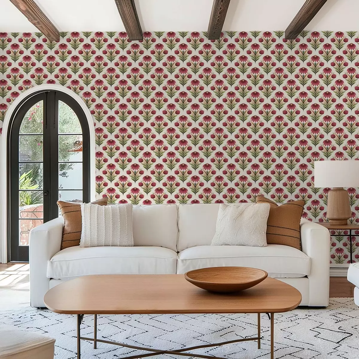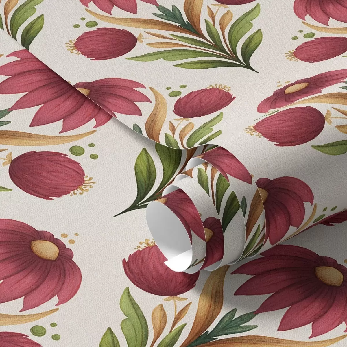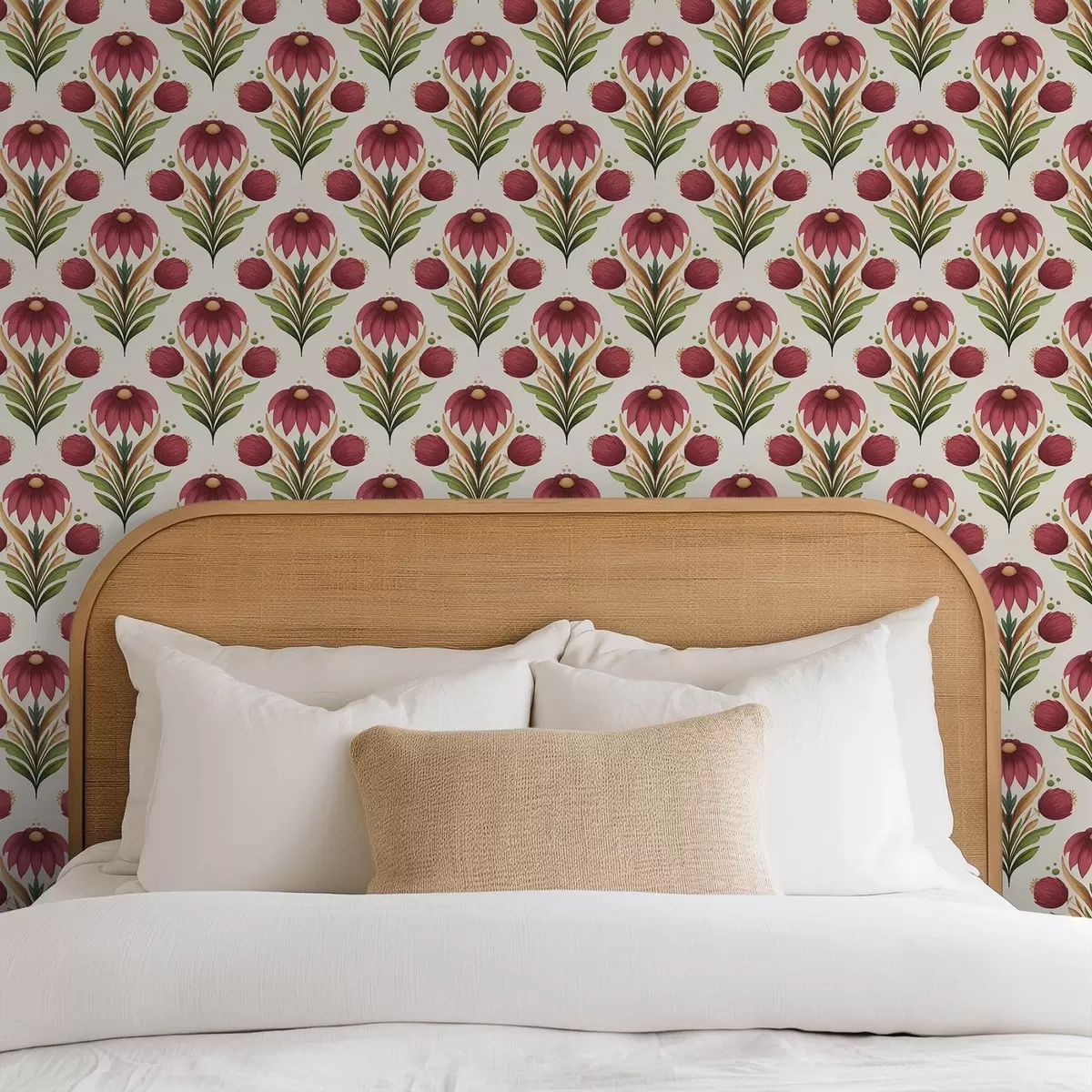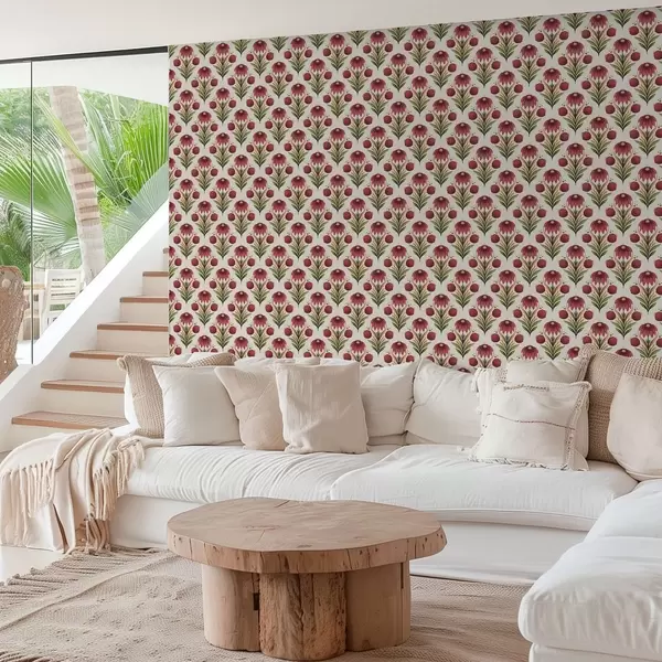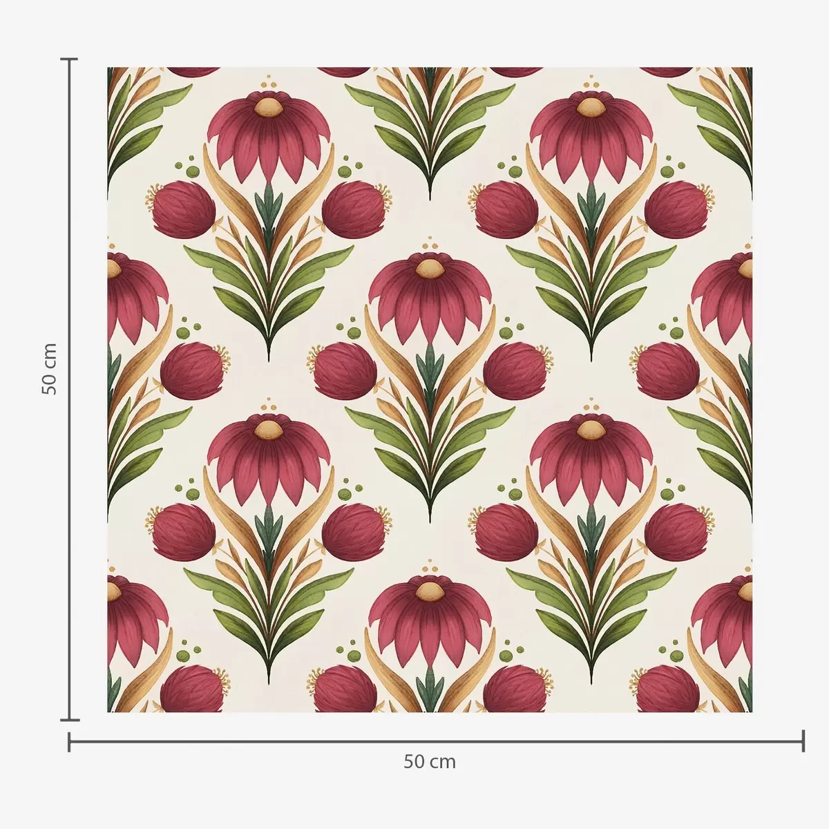 Tapéta Szimmetrikus virágdíszítés gazdag vörös-zöld árnyalatokban Nr. a00812v4