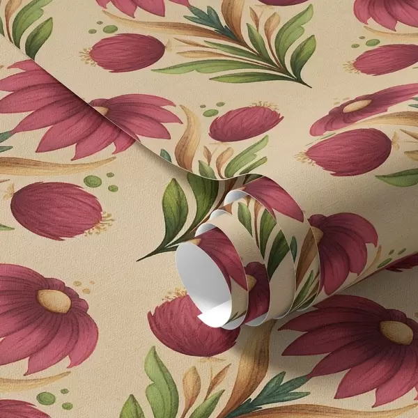 Tapéta Szimmetrikus virágdíszítés meleg bézs háttérrel Nr. a00812v6