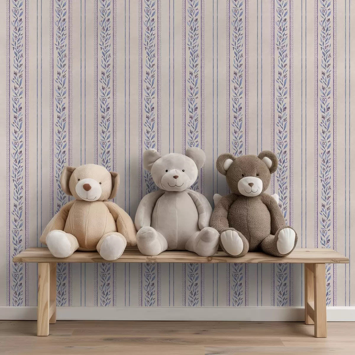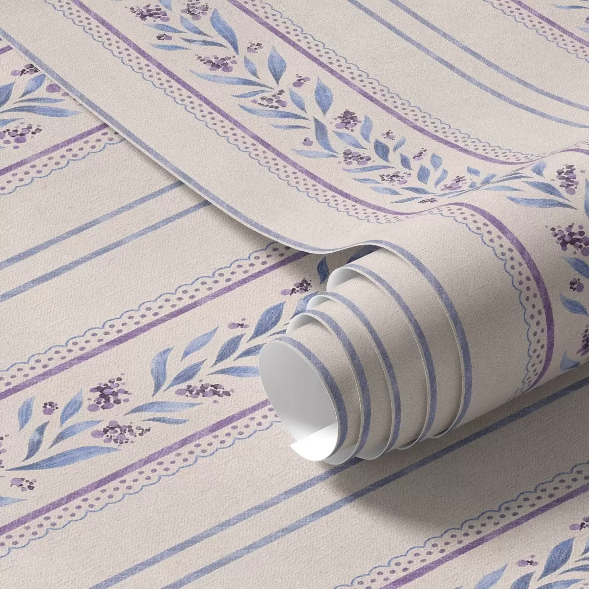 Tapéta Függőleges csíkok levendula színű vignettákkal, meleg bézs színű Nr. a00813