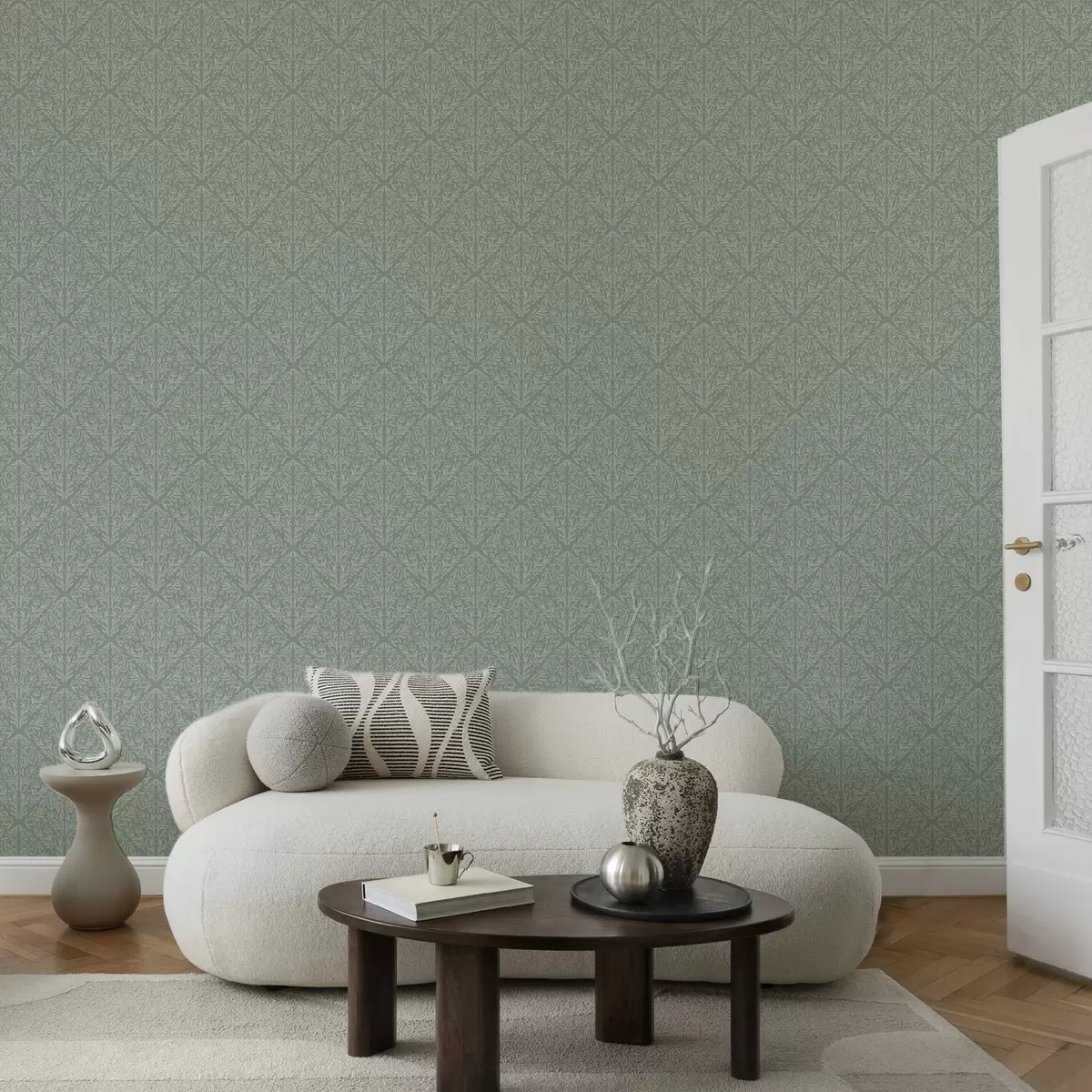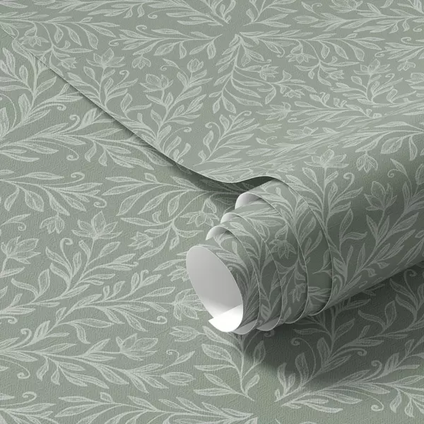 Tapéta Botanikai damaszt menta-olajzöld háttérrel Nr. a00815