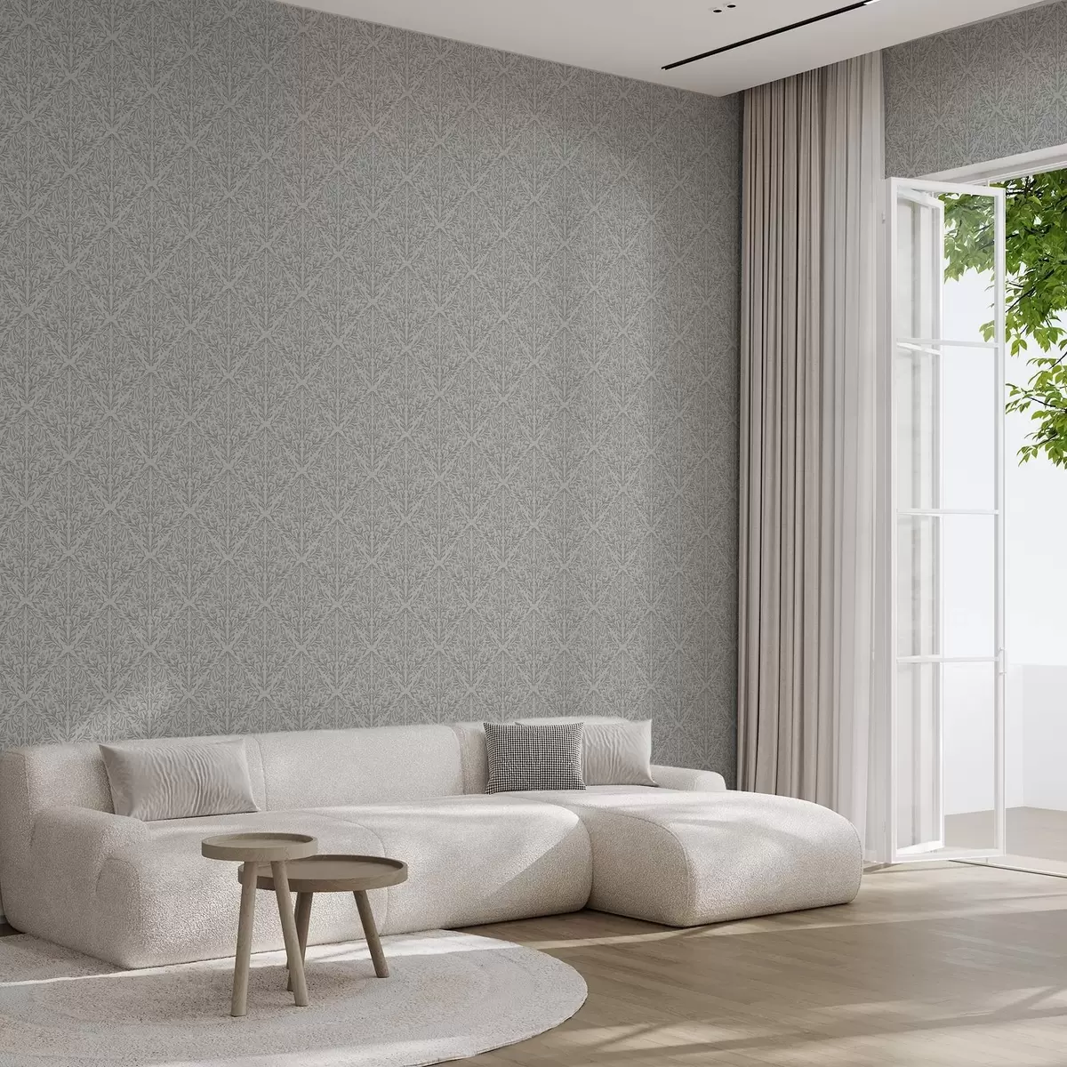 Tapéta Világosszürke botanikai damaszt puha kontúrokkal Nr. a00815v2