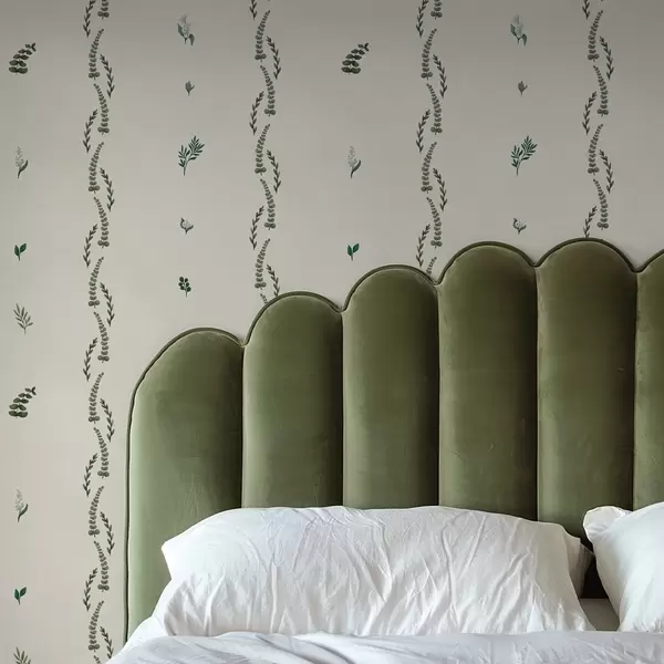 Tapéta Ritkás zöld hajtások függőleges ritmusban, krém színű alapon Nr. a00818