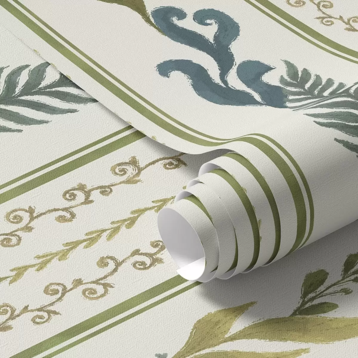 Tapéta Csíkok tekercs díszítéssel és nagy ágak zöld színben Nr. a00823