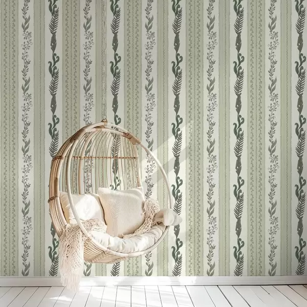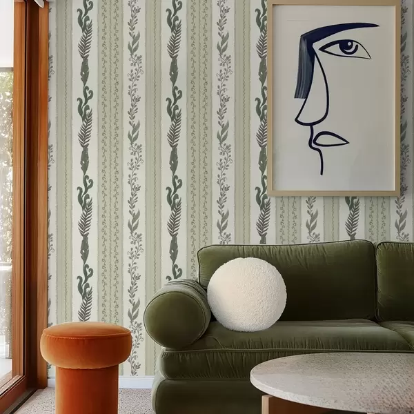 Tapéta Zöld és szürke árnyalatú csíkok ágakkal, lágy kontraszt Nr. a00824