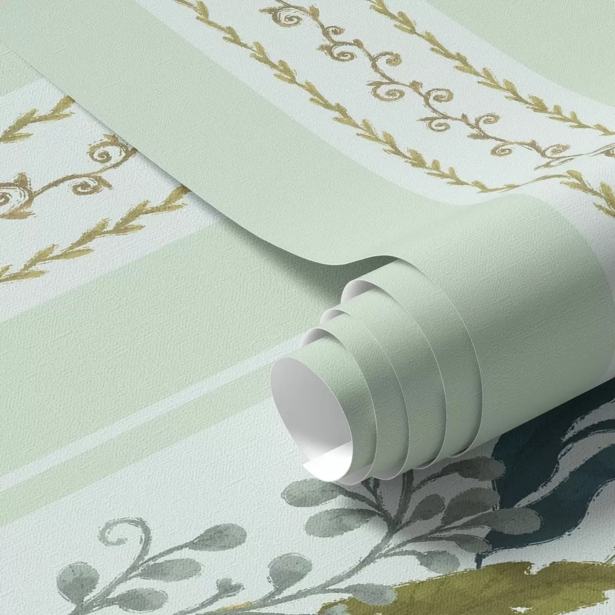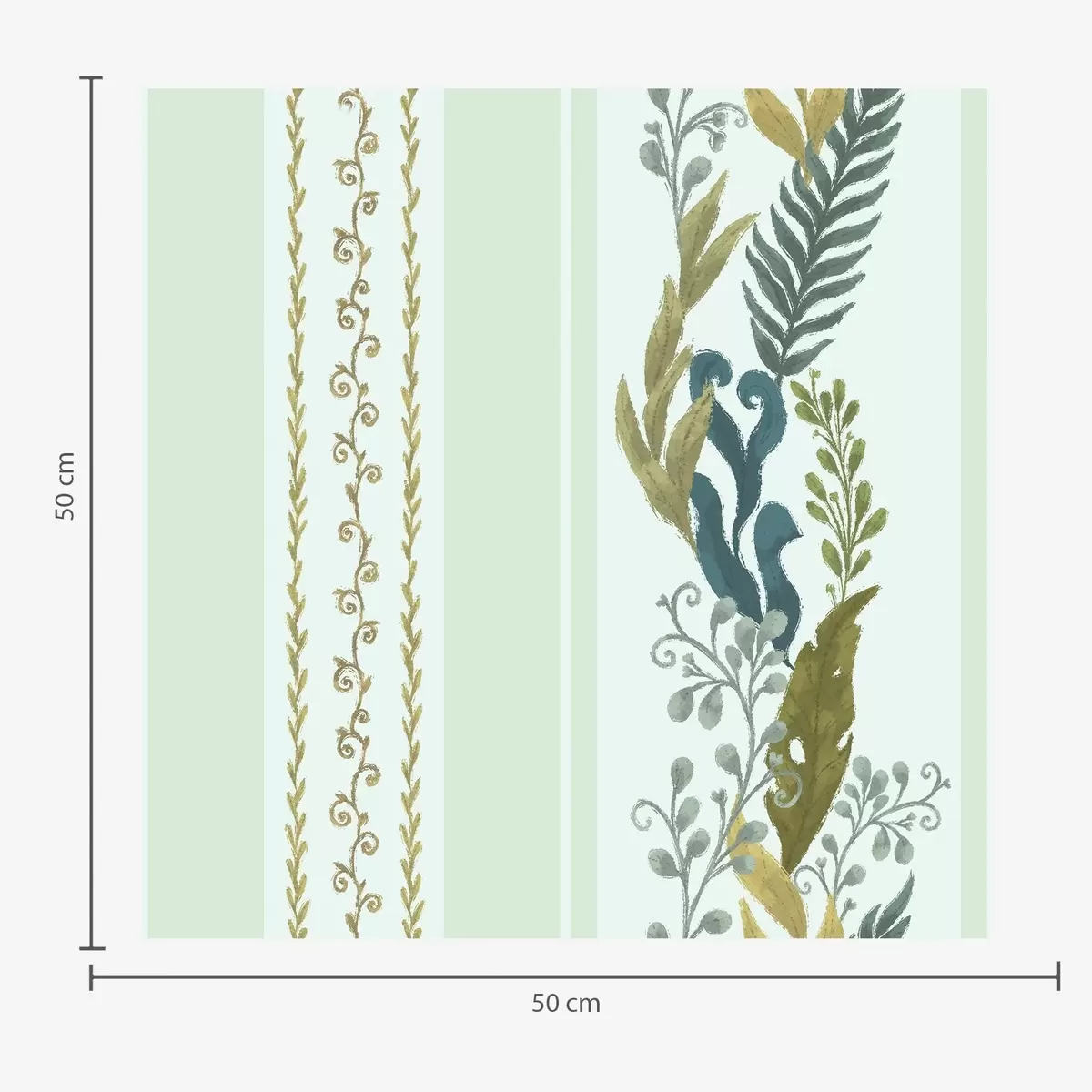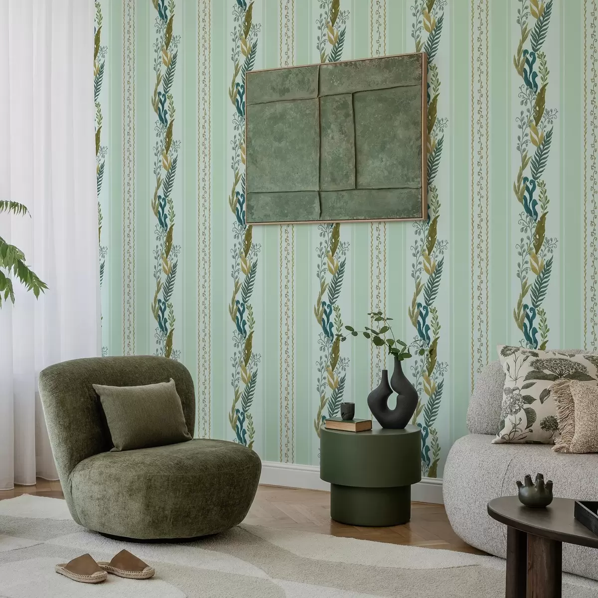 Tapéta Széles csíkok festői ágakkal, lágy menta színben Nr. a00825v1
