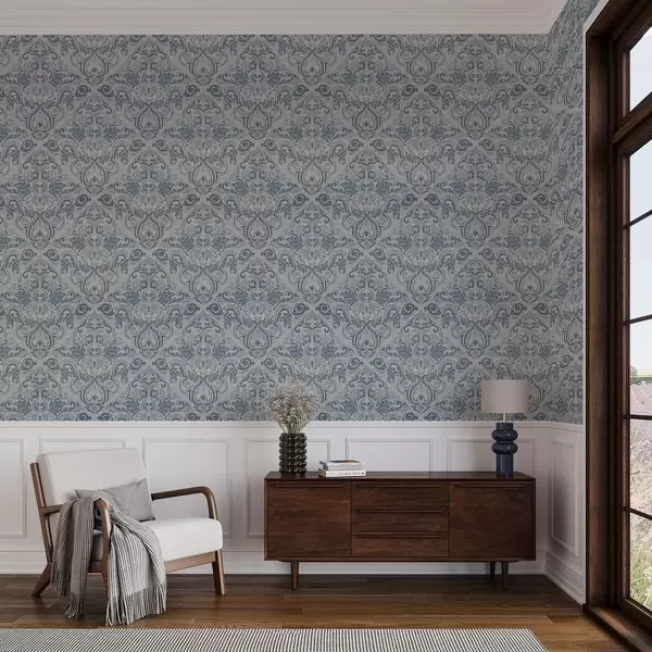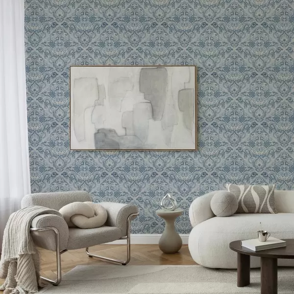Tapéta Klasszikus damaszt, kék motívumok krém alapon Nr. a00826v1