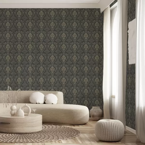 Tapéta Damaszkusz sötét grafit alapon, olíva-okker akcentussal Nr. a00828v5