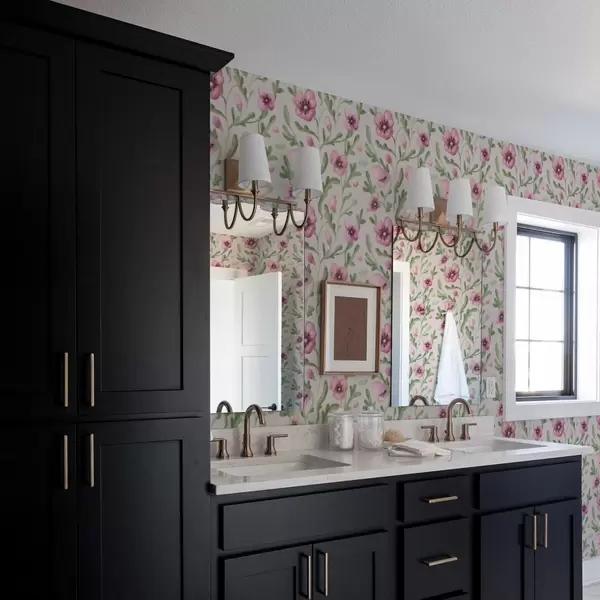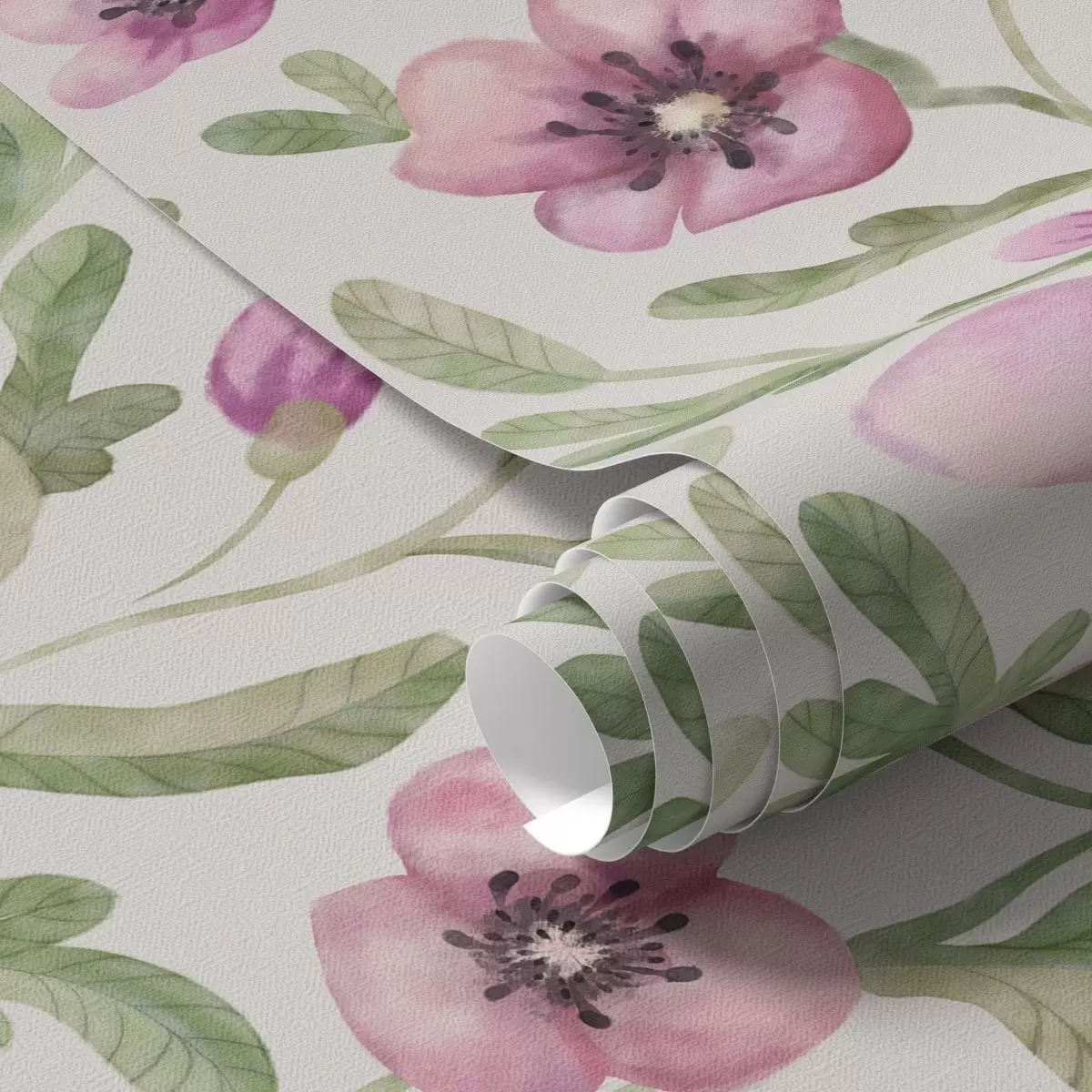 Tapéta Finom rózsaszín pipacsok levelekkel, akvarell technikával Nr. a00830