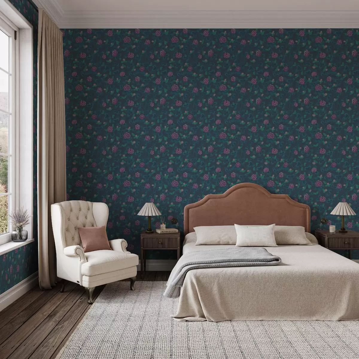 Tapéta Sötétkék háttér előtt lila virágú lóhere Nr. a00836