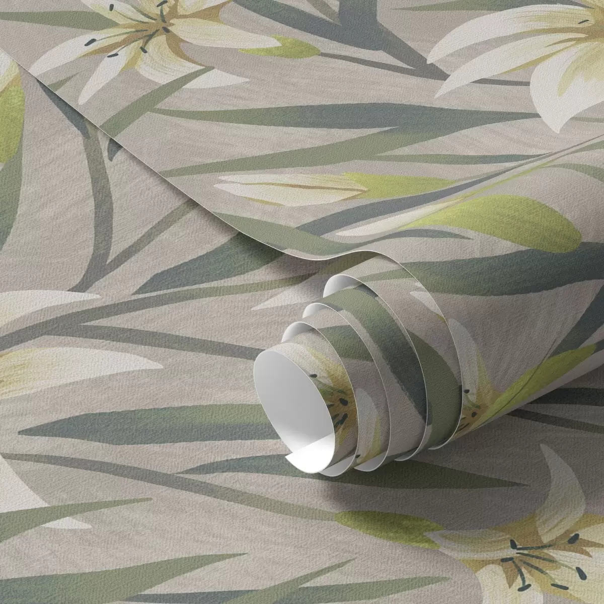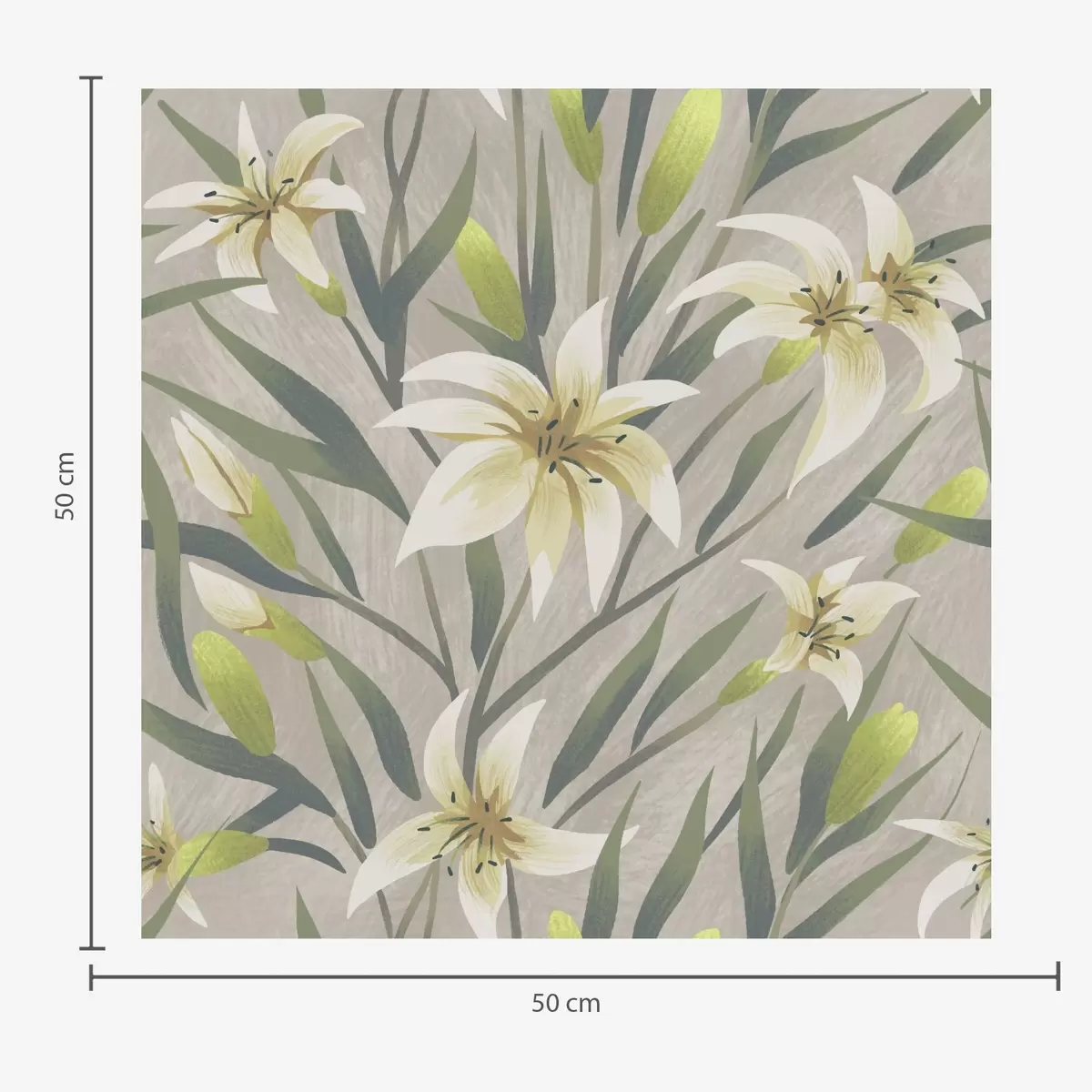 Tapéta Krém színű liliomok levelekkel szürke-bézs háttérrel Nr. a00837