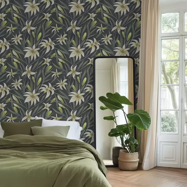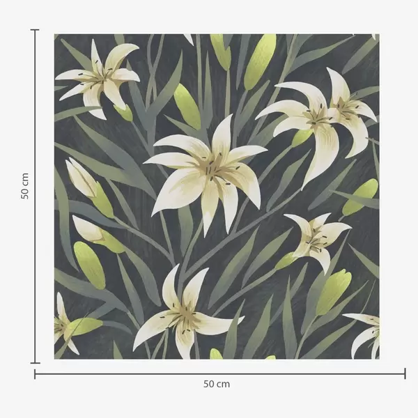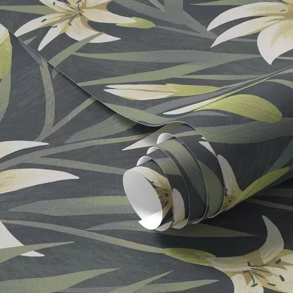 Tapéta Krémes liliomok levelekkel sötét háttér előtt Nr. a00837v1