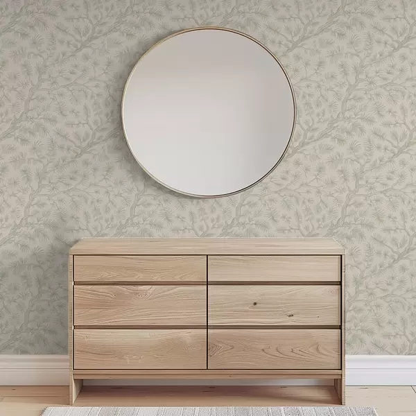 Tapéta Világoszöld árnyalatú fenyőágak bézs háttér előtt Nr. a00838v1