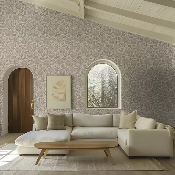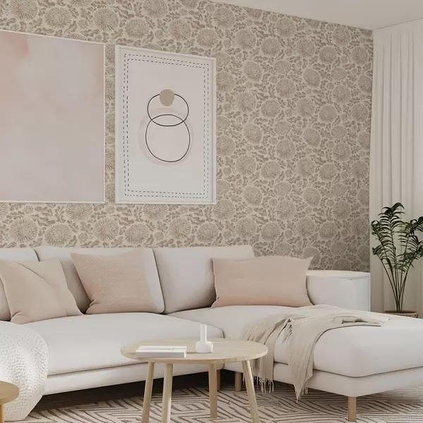 Tapéta Krizantémok és tölgylevelek lágy bézs-barna színben Nr. a00840
