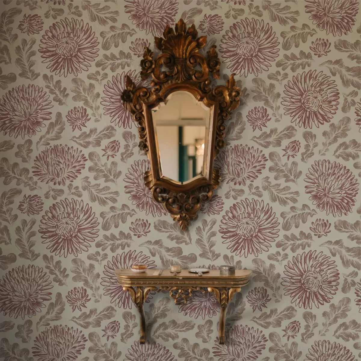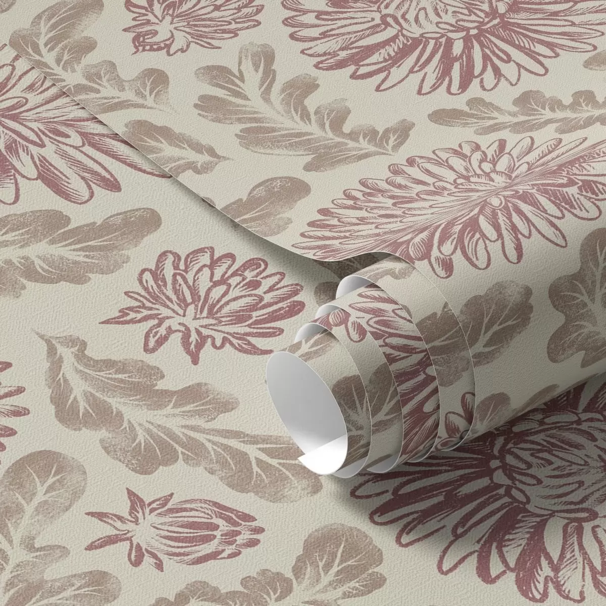 Tapéta Krémszínű krizantémok boros akcentussal Nr. a00840v1