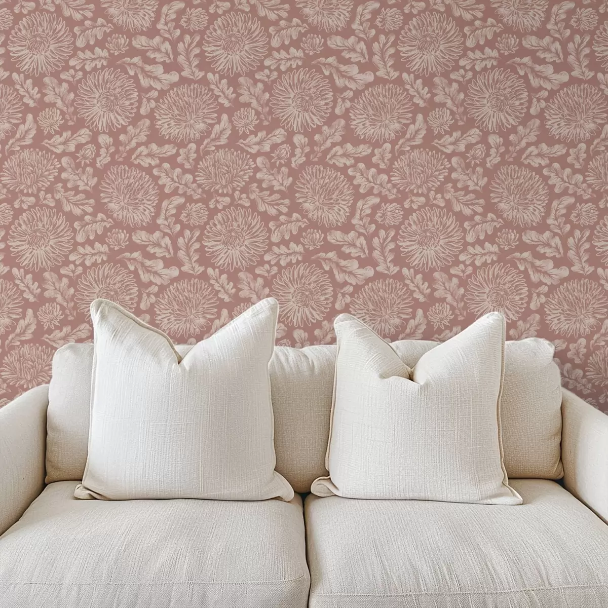 Tapéta Krémes krizantémok poros rózsaszín alapon Nr. a00840v2