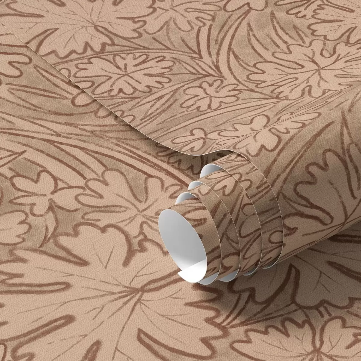 Tapéta Terrakotta-bézs színű mezőlevelek és fűszálak Nr. a00847