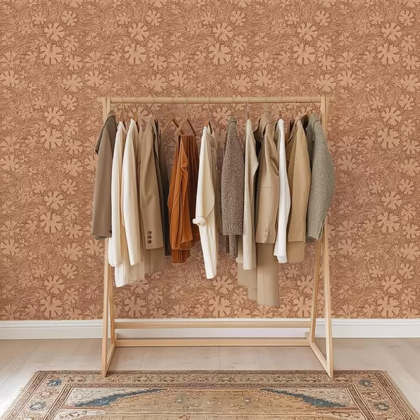 Tapéta Terrakotta-bézs színű mezőlevelek és fűszálak Nr. a00847
