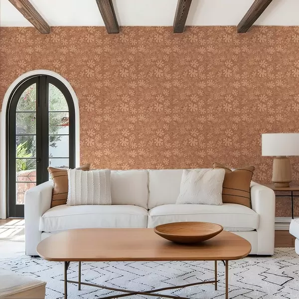 Tapéta Terrakotta-bézs színű mezőlevelek és fűszálak Nr. a00847