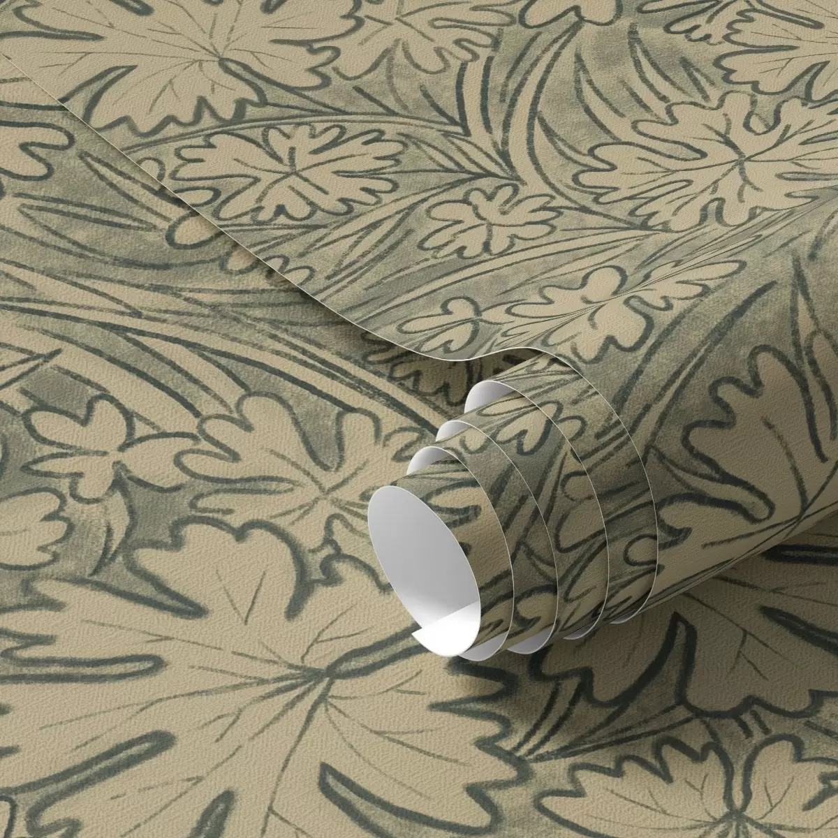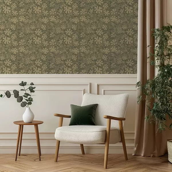 Tapéta Szürkés-olajzöld árnyalatú mezei levelek és fűszálak Nr. a00847v1