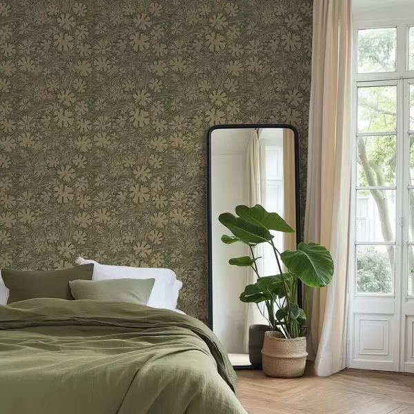 Tapéta Szürkés-olajzöld árnyalatú mezei levelek és fűszálak Nr. a00847v1