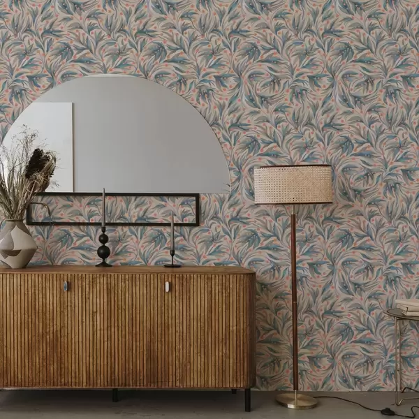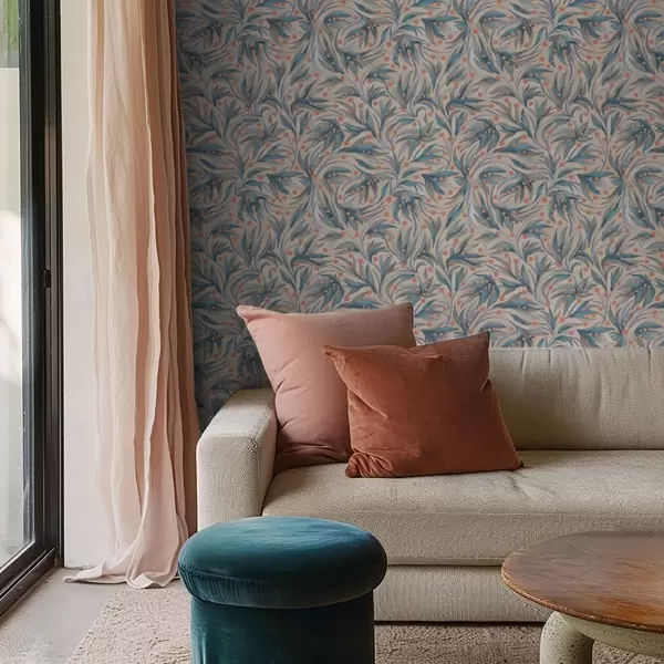 Tapéta Absztrakt kék lombozat korallvirágokkal Nr. a00852