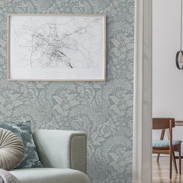 Tapéta Monokróm virágminta szürke-kék háttérrel Nr. a00859